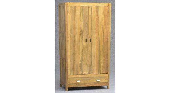 Armario en madera largo claro con dos puertas y un cajón en la parte inferior