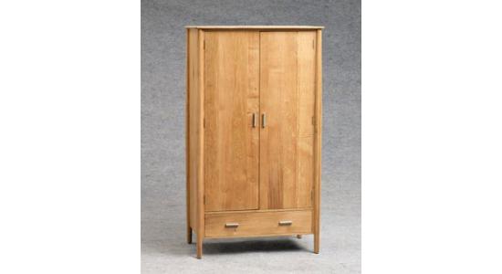 Armario en madera moderno con dos puertas y un cajón en la parte inferior
