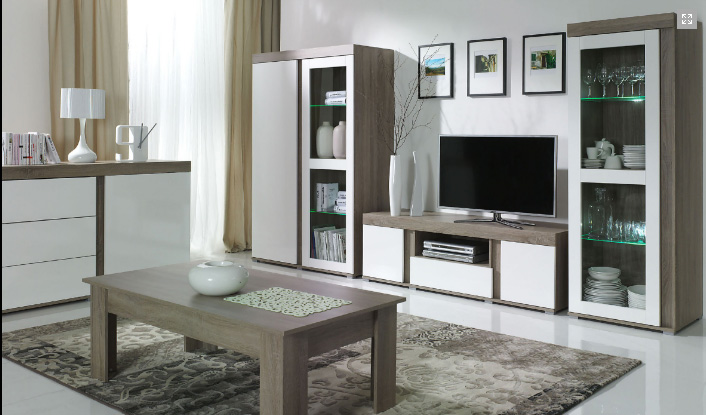 Centro de entretenimiento color blanco y madera