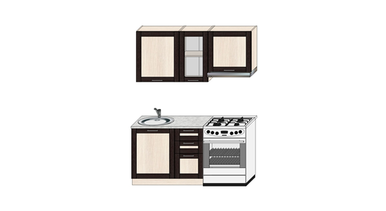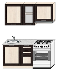 Tablero aglomerado de carcasa 16mm, Fachada MDF en marco MDF, Tablero aglomerado con guía de rodillos estándar, Mango metálico, Pata regulable H100, Perchas regulables, Secado blanco con paleta. Un zócalo de aglomerado con un sellador. Encimera aglomerado 28mm