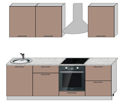 Tablero aglomerado 16m m, Fachada MDF patinado 16mm, Tablero aglomerado de las cajas estándar de la guía del rodillo, Manija del metal, pierna ajustable H100, perchas ajustables, Secado blanco con la paleta. Un zócalo de aglomerado con un sellador. Nota: Versiones con encimera aglomerado 28mm y sin encimera.