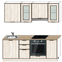 Tablero aglomerado de la carcasa 16m m, tablero aglomerado de la fachada en un marco de madera, cajas metabox, manija de madera, pierna ajustable H100, ajustable.