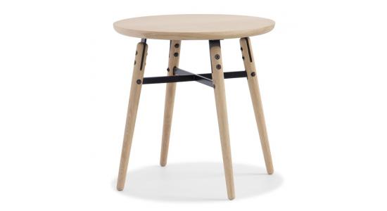 Mesa circular de café hecha en roble y refuerzo de metal de tamaño alto