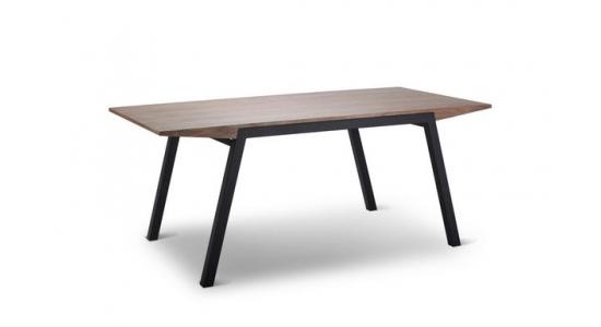 Mesa comedor enchapado en color nuez en MDF con patas de acero