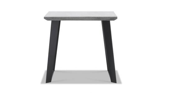 Mesa esquinera en cemento para la mesa cuadrada y estructura en patas metálicas en forma de triangulo