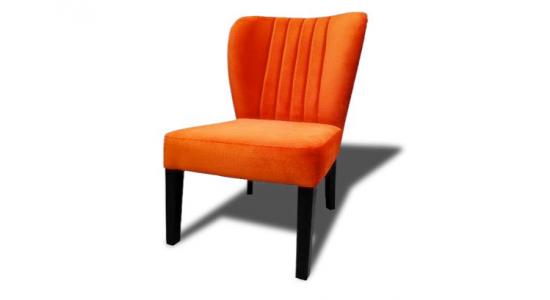 Silla fabricada en tela color naranja patas en madera maciza resalta su diseño, especial para todo tipo de espacios comercial y hogar.