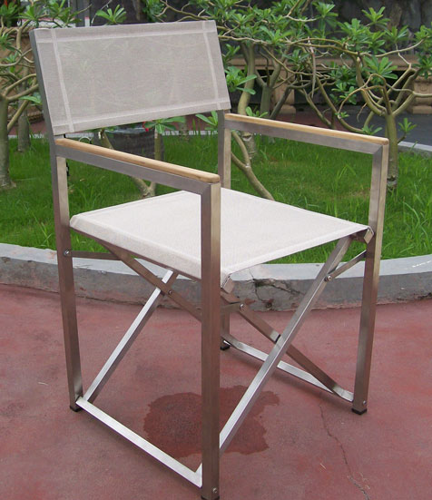 Inicio > Mobiliario > Silla Para Exteriores Plegable Hecha En Metal y Tela Resistente Con Barandales En Madera