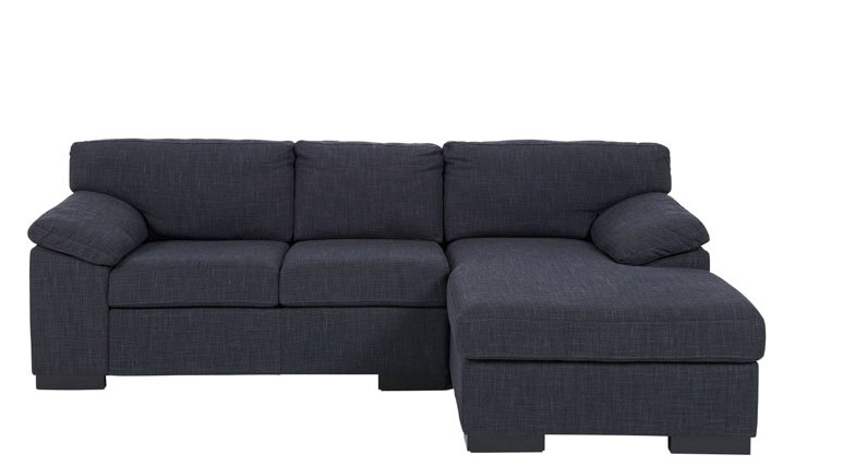 Sofá en l azul oscuro patas combinadas al material tres puestos con espaldar para comodidad al recostarse estilo lounge. Combinación con colores claros.