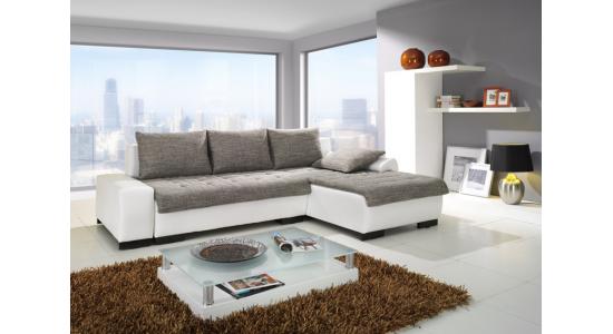 Sofá en l combinación de colores y materiales, blanco y Café patas en madera solida tela y cuero le dan un gran dinamismo al espacio en su combinación con colores y otros muebles.