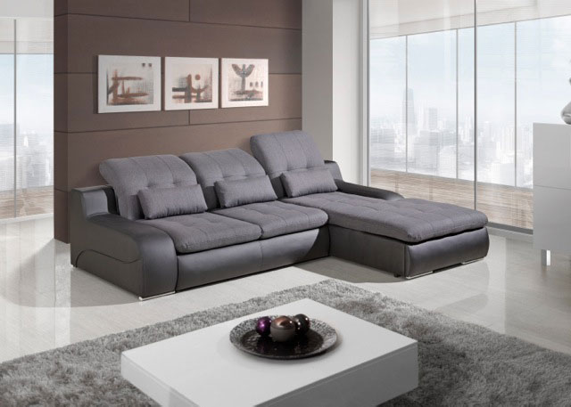 Sofá en l Café reclinable combinación de colores patas escondidas para darle protagonismo a su diseño especial para espacios iluminados.