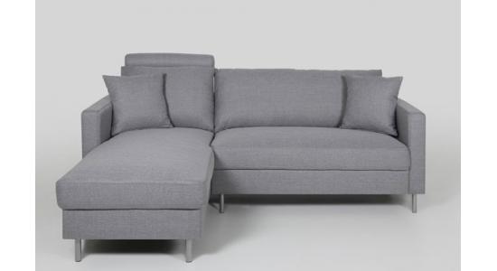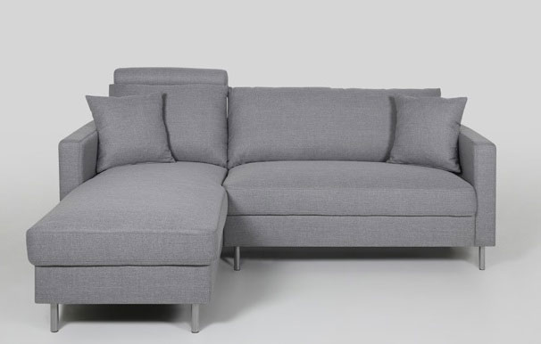 Sofá en l gris tres puestos uno de ellos para recostarse con comodidad, patas en metal ofrece un llamativo estilo que marca la tendencia de espacios pequeños