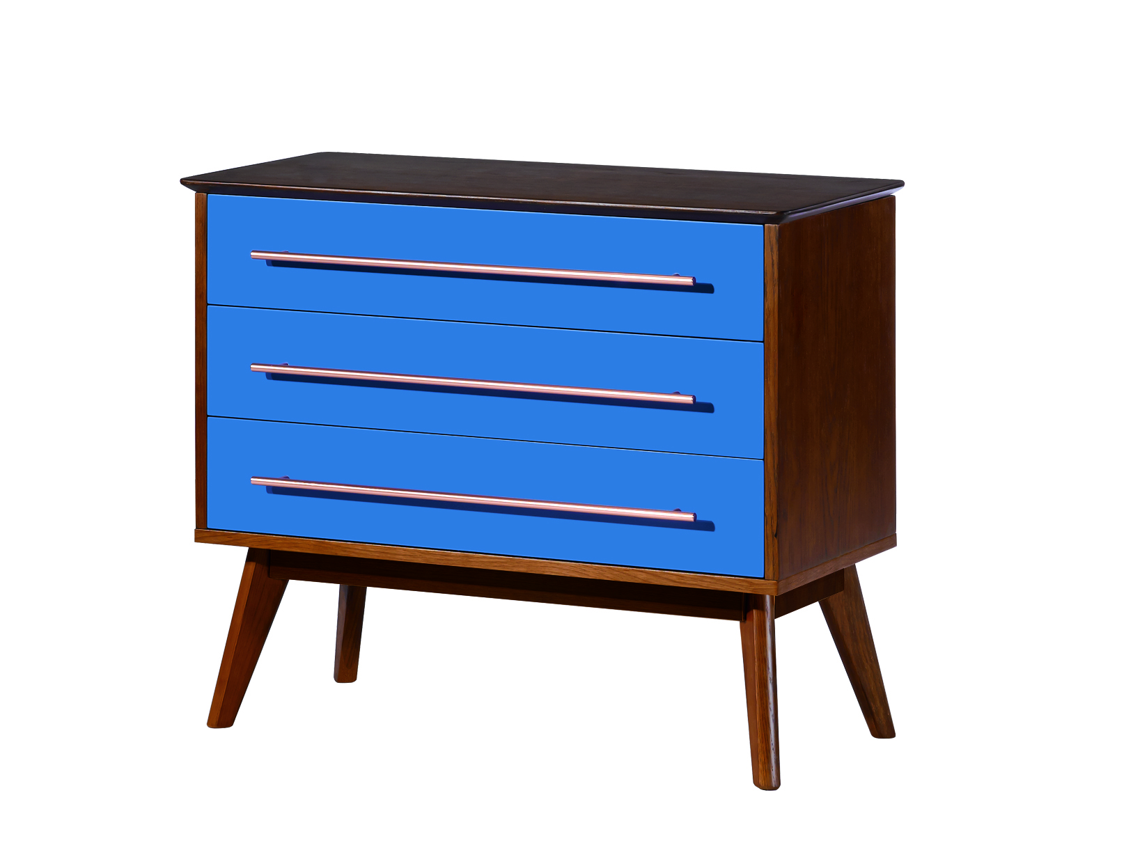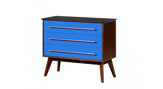 Aparador con chapilla y patas en roble, estilo retro, tres cajones, 18mm PU color azul