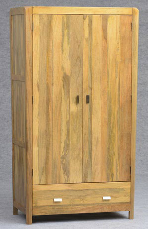 Armario en madera largo claro con dos puertas y un cajón en la parte inferior