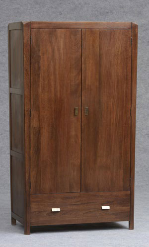 Inicio > Mobiliario > Armario En Madera Largo Oscuro Con Dos Puertas y Un Cajon En La Parte Inferior