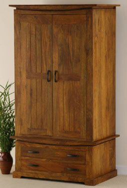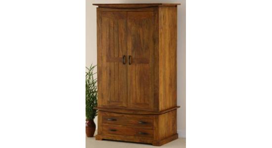 Armario en madera maciza claro con dos puertas y dos cajones en la parte inferior