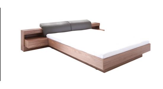 Cama doble con mesas de noche integradas en madera cabecera en cuero ideal para hoteleria (Accesorios no incluidos)