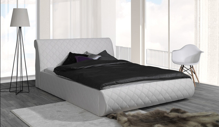 Cama doble en cuero blanca enteriza (Accesorios no incluidos)