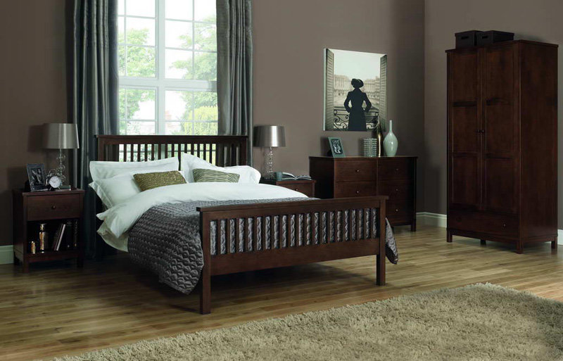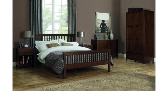 Cama doble en madera oscura