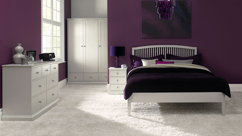 Cama doble en madera pintada de blanco