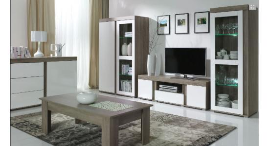 Centro de entretenimiento color blanco y madera