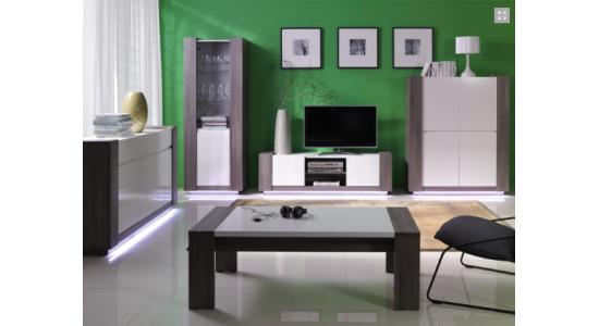 Centro de entretenimiento en madera laminada en blanco y café oscuro