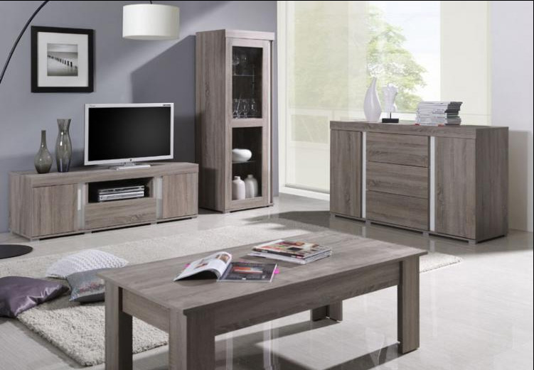 Centro de entretenimiento en madera laminada color pino