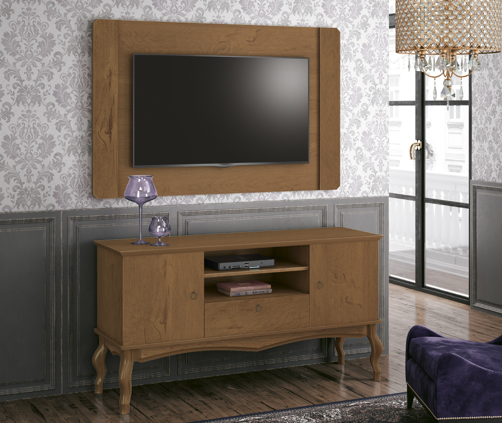 Centro de entretenimiento retro, 2 puertas, 2 estantes, 1 cajón. Patas de madera maciza.