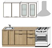 Tablero aglomerado de la carcasa 16m m, tablero aglomerado de la fachada en un marco de madera, cajas metabox, manija de madera, pierna ajustable H100, ajustable.