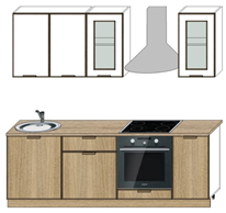 Tablero aglomerado de la carcasa 16m m, tablero aglomerado de la fachada en un marco de madera, cajas metabox, manija de madera, pierna ajustable H100, ajustable.