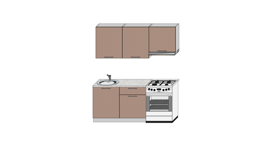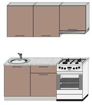 Tablero aglomerado 16m m, Fachada MDF patinado 16mm, Tablero aglomerado de las cajas estándar de la guía del rodillo, Manija del metal, pierna ajustable H100, perchas ajustables, Secado blanco con la paleta. Un zócalo de aglomerado con un sellador. Nota: Versiones con encimera aglomerado 28mm y sin encimera.