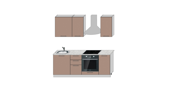 Tablero aglomerado 16m m, Fachada MDF patinado 16mm, Tablero aglomerado de las cajas estándar de la guía del rodillo, Manija del metal, pierna ajustable H100, perchas ajustables, Secado blanco con la paleta. Un zócalo de aglomerado con un sellador. Nota: Versiones con encimera aglomerado 28mm y sin encimera.