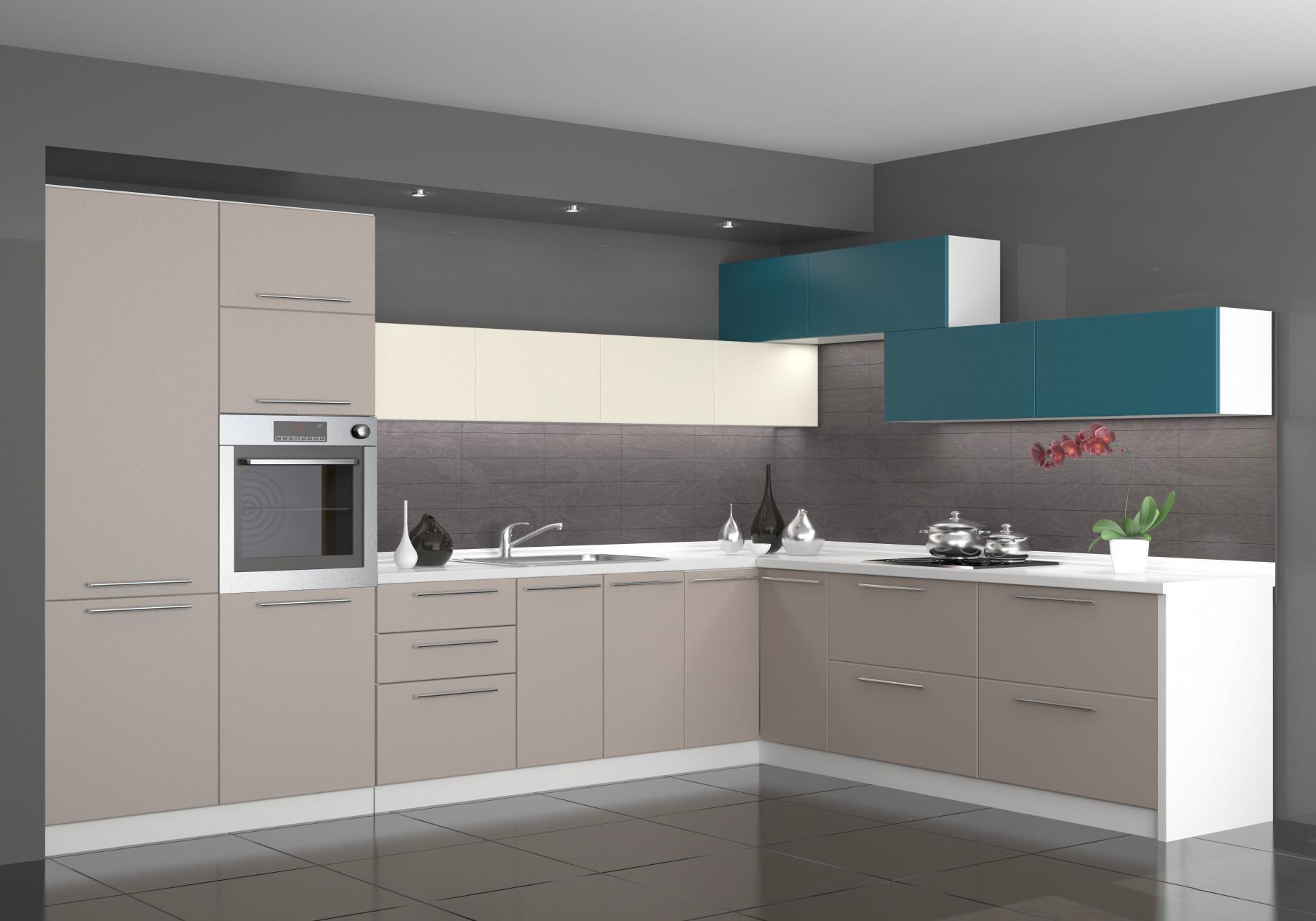 Cocina moderna modular MDF, PVC, marfil, cachemira.
