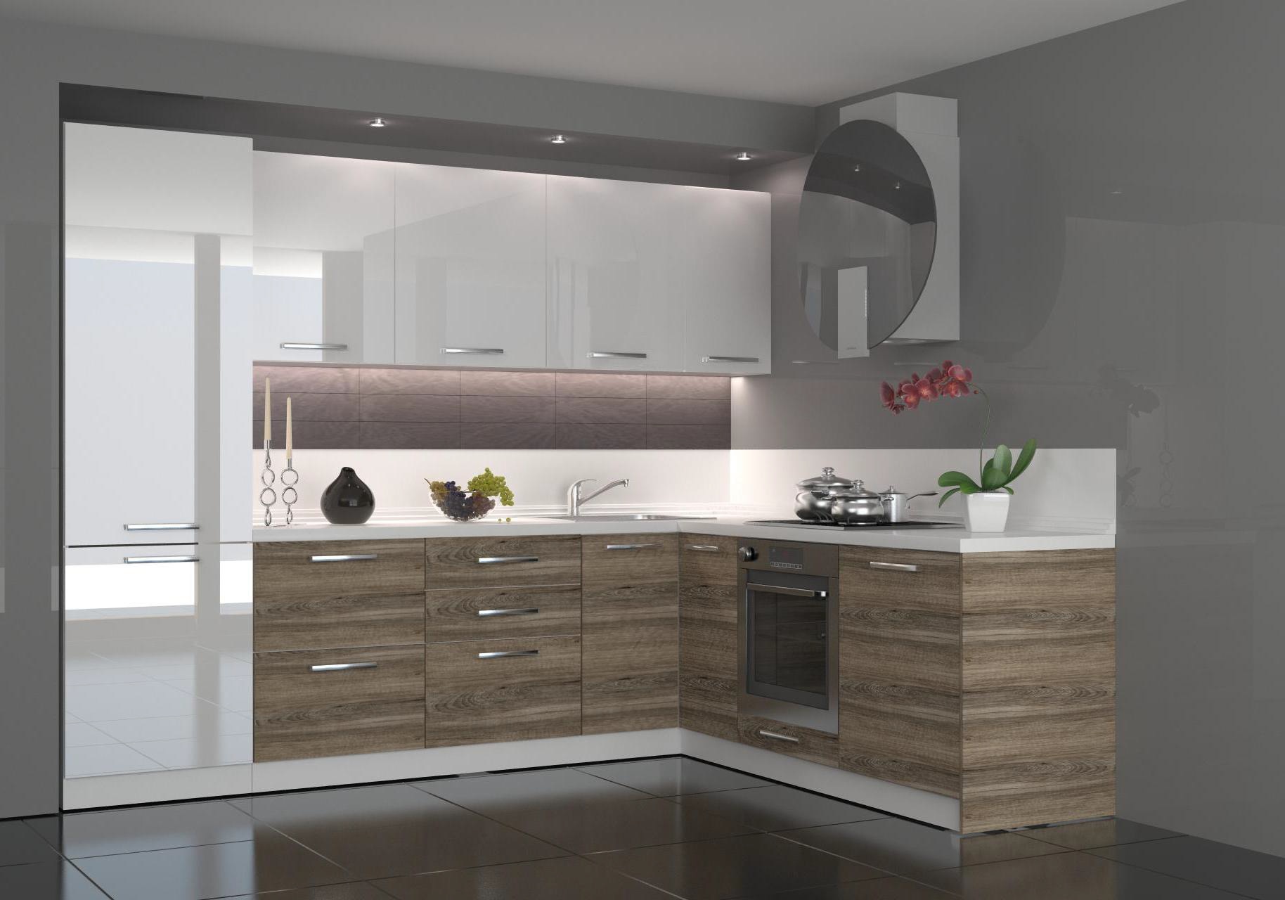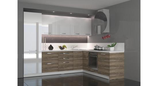 Cocina modular moderna MDF, PVC, blanco HG, secoya mate.