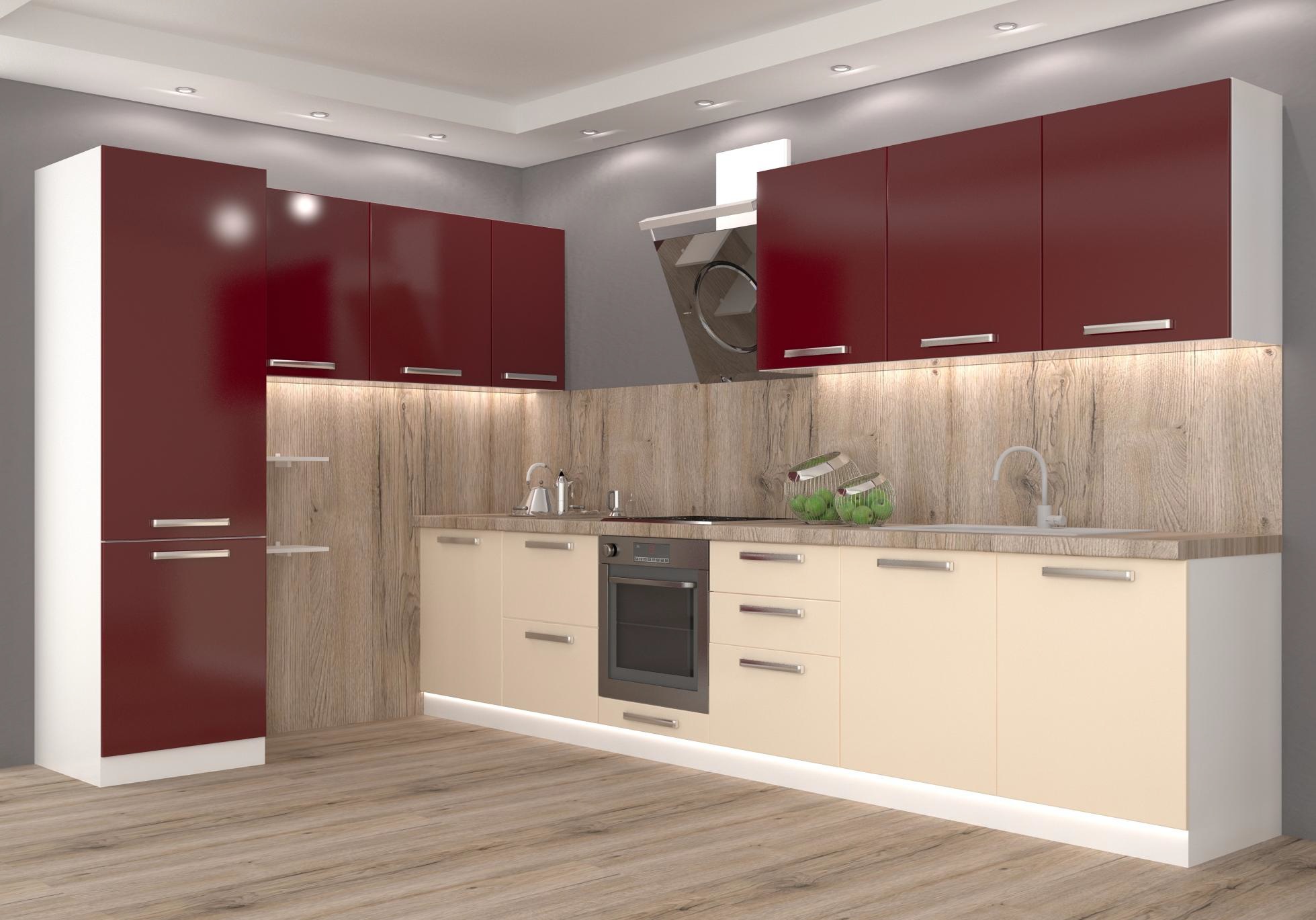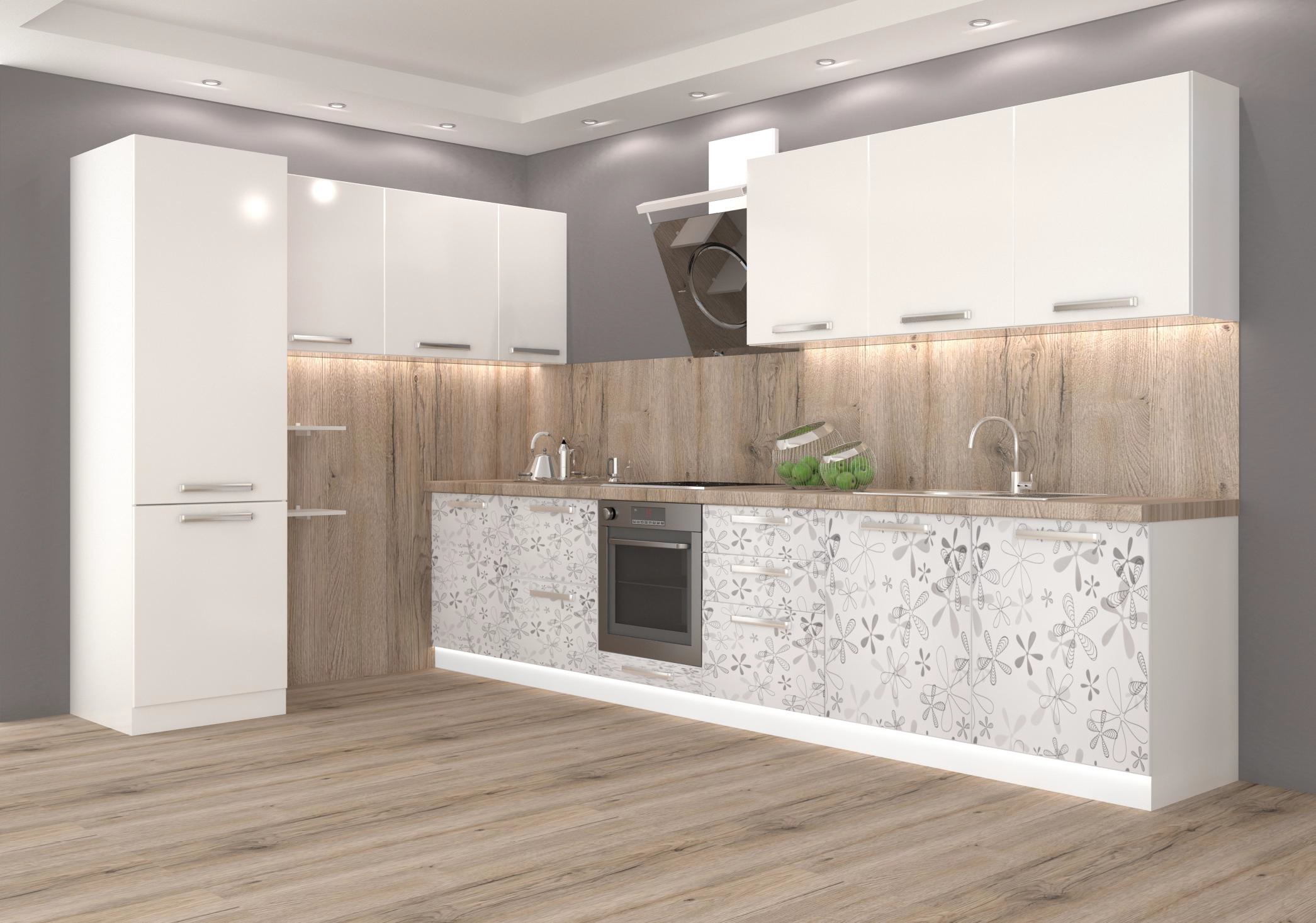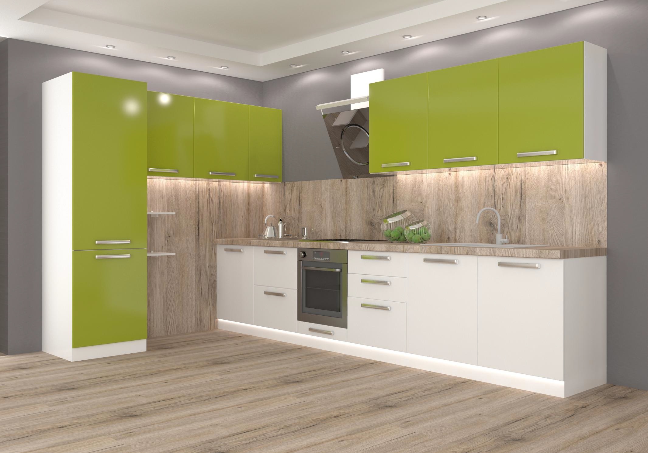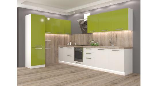 Cocina modular moderna MDF, PVC, verde, blanco de alto brillo.