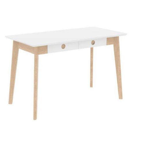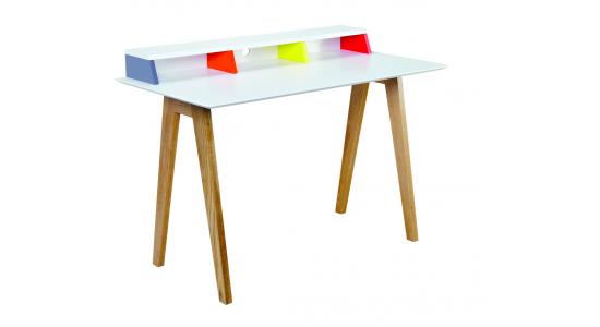 Escritorio blanco con patas en roble tres compartimentos en colores, su estructura delgada 18mm PU pintado.