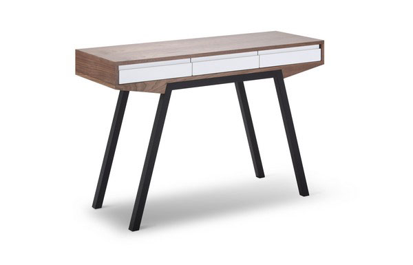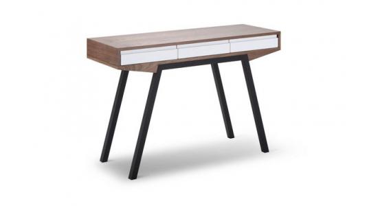 Inicio > Mobiliario > Escritorio En Mdf Con Blanco En El Panel Para Sus Tres Cajones Acabado Enchapado En Nogal