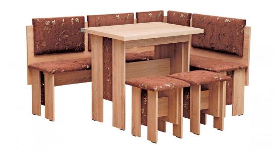 Inicio > Mobiliario > Juego de Comedor Auxiliar En Mdf Para Siete Puestos Con Acolchado En Tela Decorada En