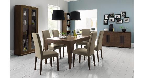 Inicio > Mobiliario > Juego de Comedor En Madera Largo Rectangular Sillas En Material Color Gris Todo En Un