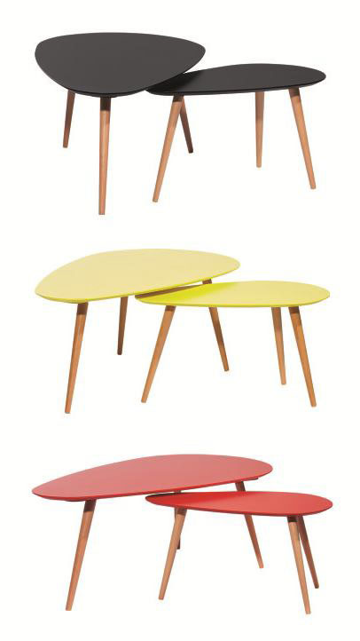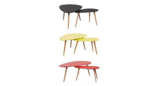 Inicio > Mobiliario > Juego de Mesas Amarillas Negras y Rojas Medianas Forma En Diseno Ovalado Mdf de 18mm Con