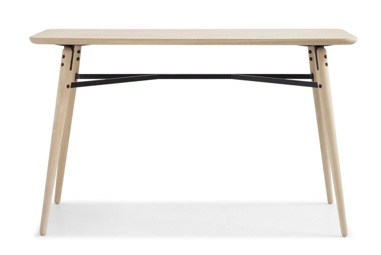 Mesa alta hecha en roble y metal de patas delgadas