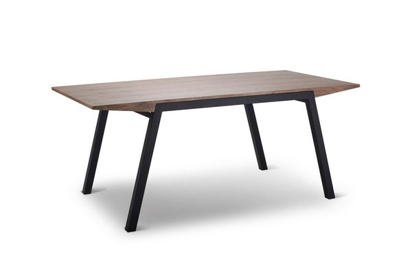 Mesa comedor enchapado en color nuez en MDF con patas de acero