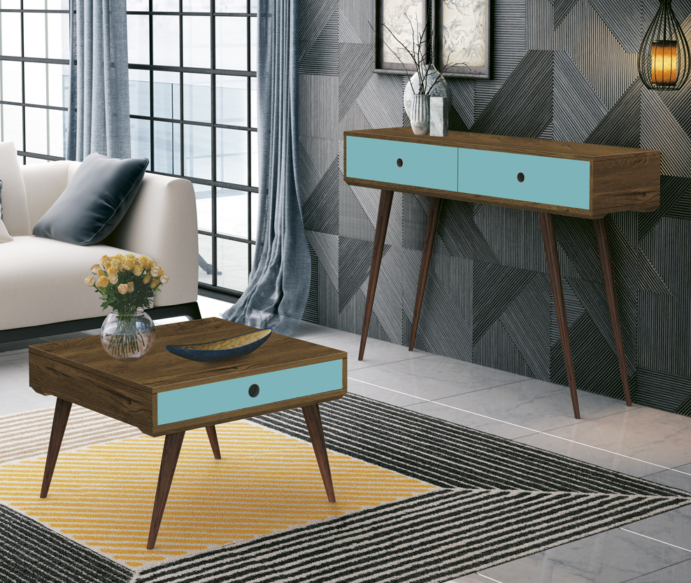 Mesa auxiliar rectangular retro, patas en madera maciza, marco reforzado y pintura UV de alta calidad.A:76 L:120 P:38
