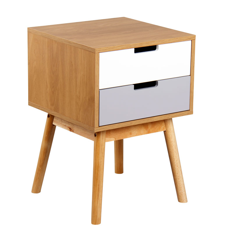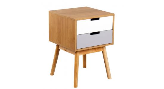 Mesa de noche con dos cajones patas de madera PB melamina mas caucho de madera