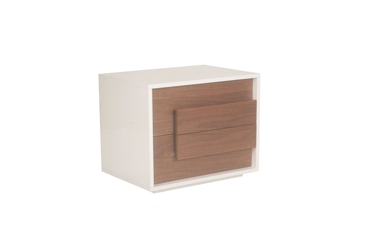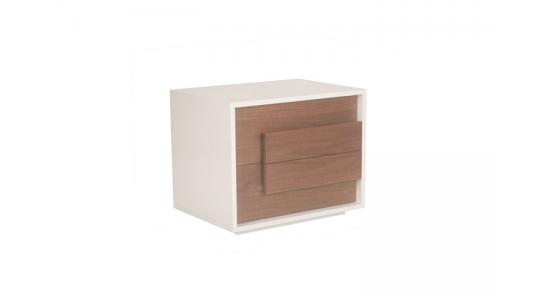 Inicio > Mobiliario > Mesa de Noche En Mdf Su Panel En Dos Cajones Enchapados En Nogal Su Cubierta En Brillo