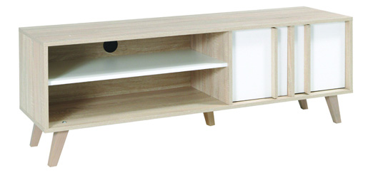 Mesa de televisión y sonido en madera laminada un cajon dos repisas estilo retro