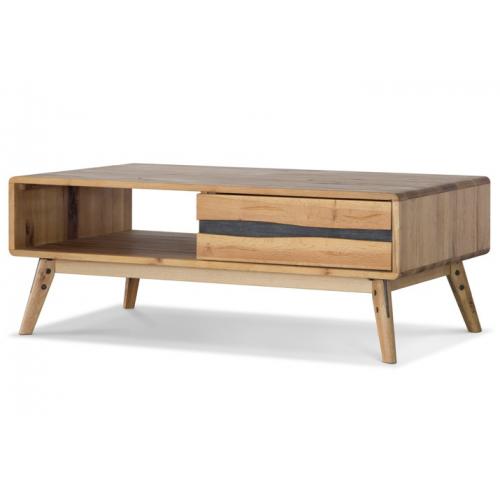 Mesa de TV y sonido con chapilla y patas en roble, tres repisas tres cajones y tres compartimentos en color madera y negro