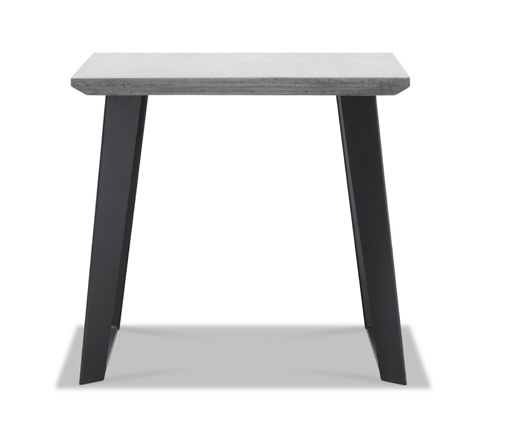 Mesa esquinera en cemento para la mesa cuadrada y estructura en patas metálicas en forma de triangulo