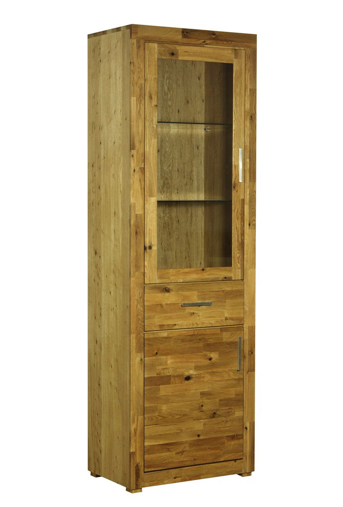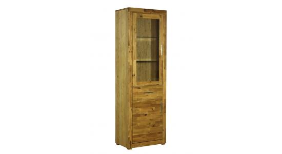 Repisa en madera maciza con vidrio en una compuerta y un cajón cajónes