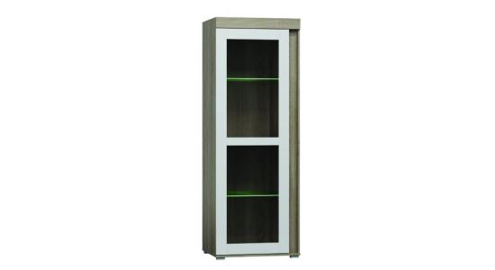 Repisa en madera laminada con detalles blancos e iluminación