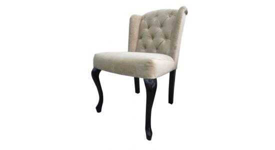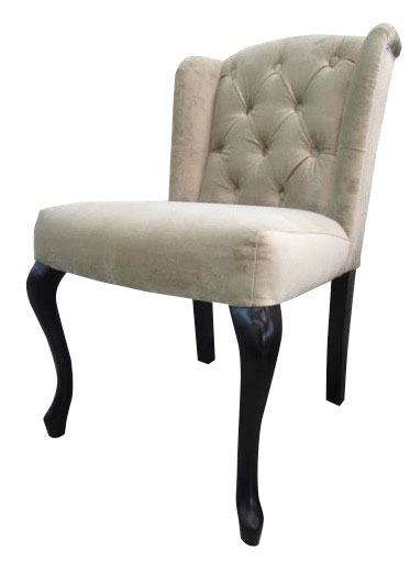 Silla clásica con botones color blanco patas en madera talladas con un estilo único.